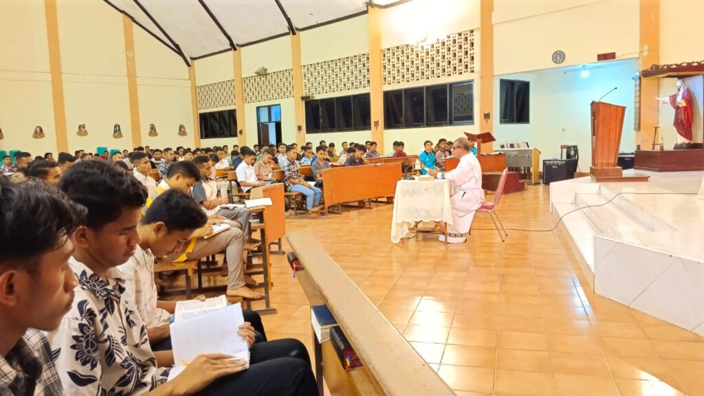 𝗣𝗲𝗻𝗳𝘂𝗶, 𝗠𝗡-Para Frater Seminari Tinggi St. Mikhael Penfui Kupang kembali menggelar kegiatan Rekoleksi bulanan pada hari Sabtu, 09/09/2023, yang dipimpin oleh Romo Roni Pakaenoni, Pr. Kegiatan ini berlangsung di Kapela Seminari mulai pukul 18.00-19.00. Kegiatan rekoleksi ini merupakan yang pertama kalinya pada semester ini. Kegiatan Rekoleksi tersebut menghantar para Frater untuk sejenak merenung tentang Sabda Tuhan yang adalah dasar dan pedoman hidup orang beriman Kristiani.
